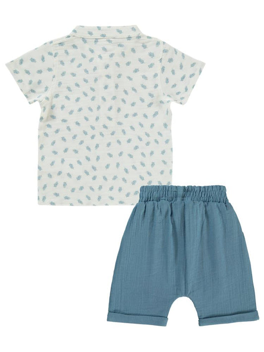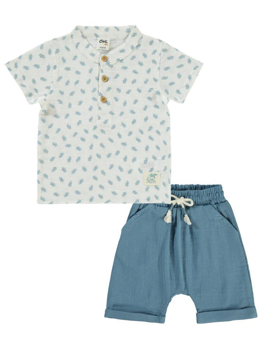 Civil baby palmiye baskılı 6-18 ay takım - mavi