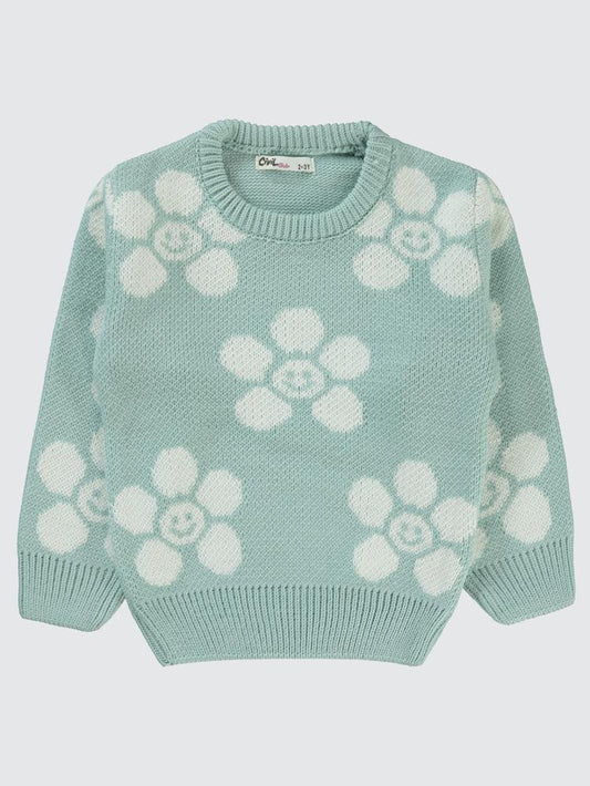 Civil girls papatya desenli 2-5 yaş kazak - yeşil