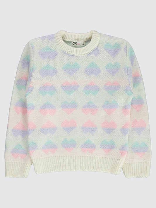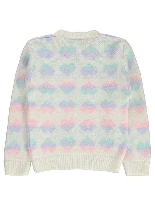 Civil girls renkli kalp desenli 2-5 yaş kazak - ekru