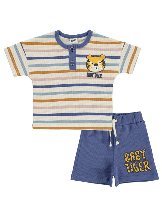 Civil baby kaplan baskılı çizgi empirme şortlu 6-18 ay takım - fil dişi