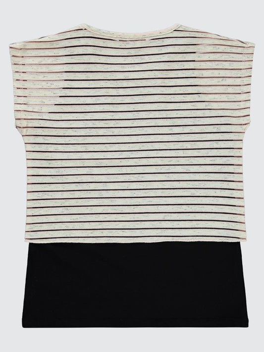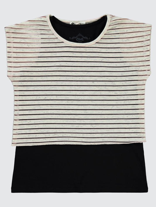 Civil girls tüllü çizgili 10-13 yaş tişört - siyah