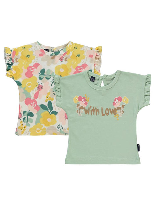 Miniworld büyük çiçekli 2'in 1 pack 3-12 ay tişört - yeşil