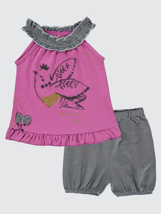 Bizizo summer baskılı bisiklet yaka 2-5 yaş takım - pudra