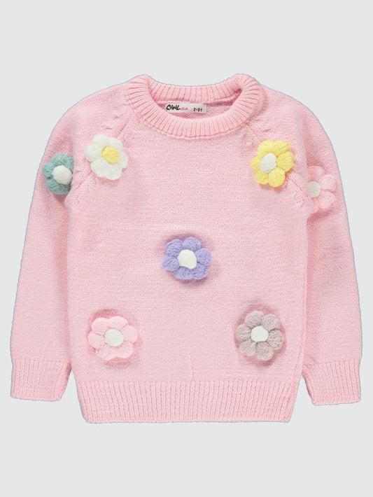 Civil girls mobil papatya aksesuarlı 2-5 yaş kazak - pembe