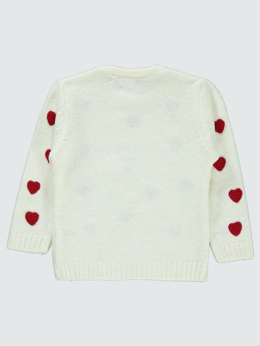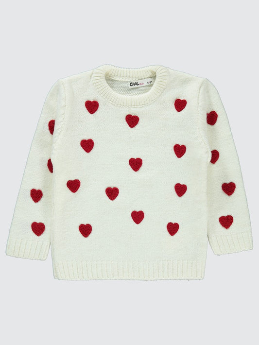 Civil girls süzene kalp nakışlı 2-5 yaş kazak - ekru