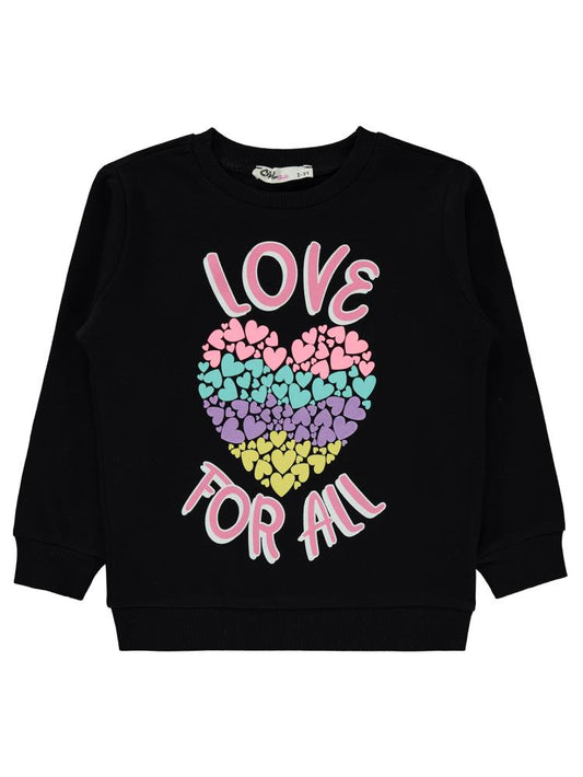 Civil girls love for all baskılı 2-5 yaş sweatshirt - siyah