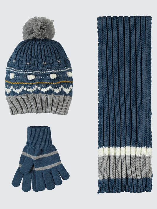 Civil boys 6-9 yaş atkı bere eldiven set - mavi