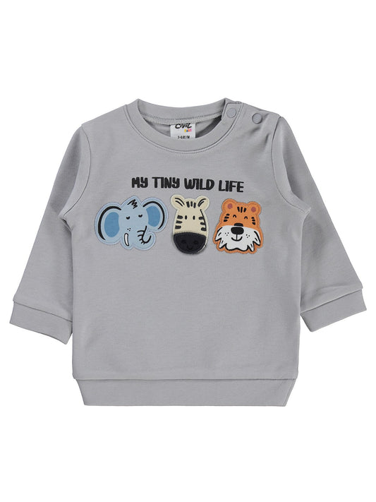 Civil baby hayvan nakışlı 3-18 ay sweatshirt - gri