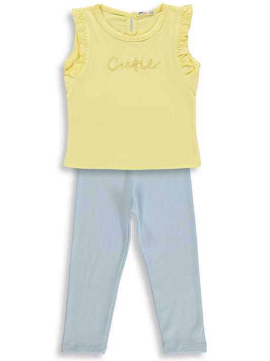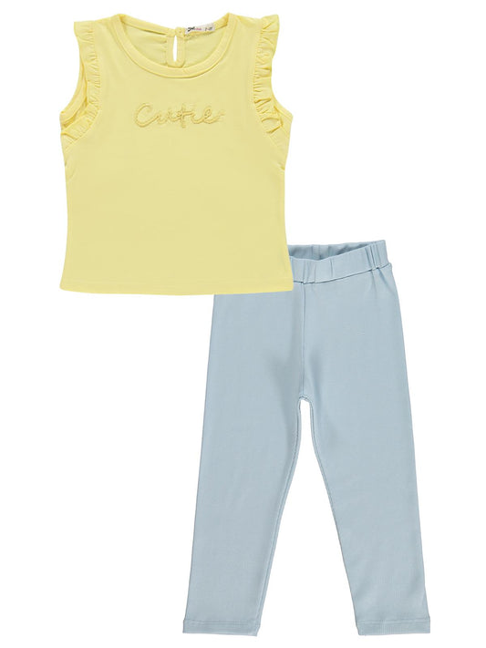 Civil girls cutie nakışlı 2-5 yaş takım - sarı