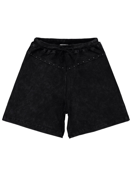 Civil girls taşlı yıkamalı 10-13 yaş şort - siyah