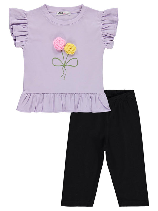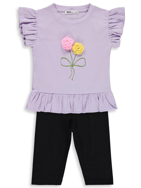Civil girls fiyonk aplikeli 2-5 yaş tayt - lila