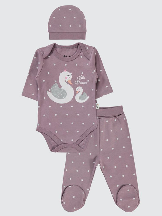 Civil baby kuğu puanlı empirme 3'lü 1-6 ay takım - lila