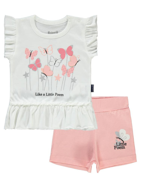 Miniworld mobil kelebekli şortlu 6-18 ay takım - pudra
