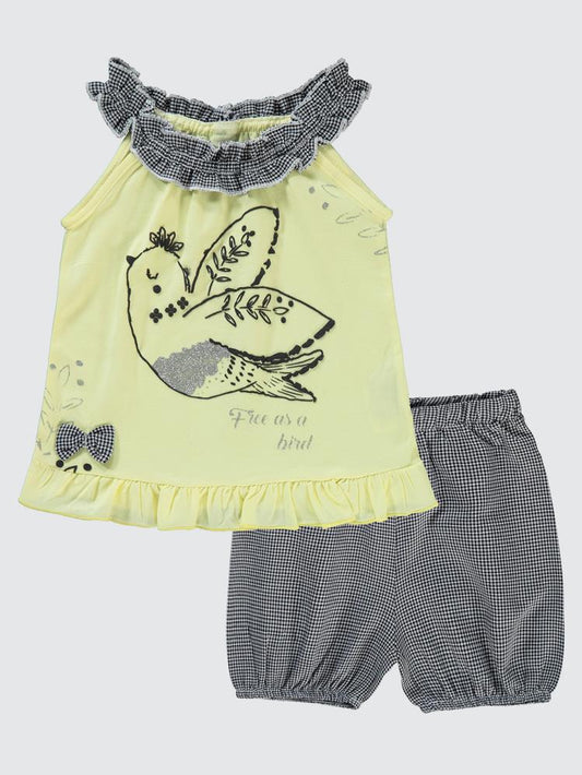 Kumru kuş baskılı 6-18 ay takım - sarı