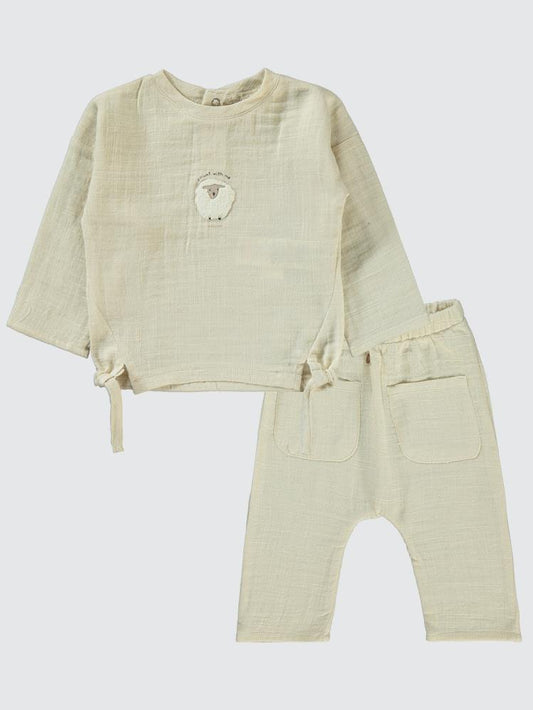 Civil baby kuzu nakışlı 3-12 ay takım - ekru