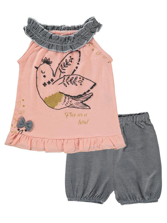 Kumru kuş baskılı 6-18 ay takım - pudra