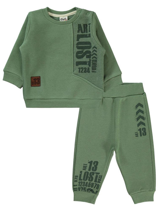 Civil baby yazı baskılı 6-18 ay takım - yeşil