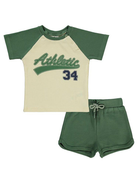 Concept pike palmiye tişört kot şortlu 2'li 6-18 ay takım - yeşil