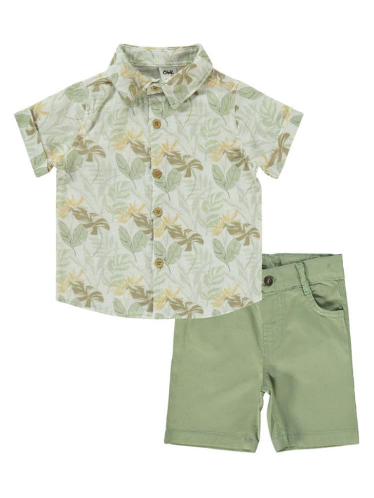 Civil baby yeşil yaprak desenli 6-18 ay takım - haki