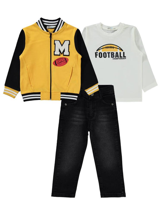 Civil boys m nakışlı 3'lü 2-5 yaş takım - hardal
