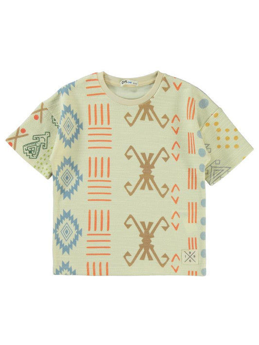 Civil boys kendinden desenli 6-9 yaş tişört - ekru