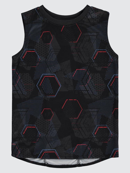 Civil boys geometrik desen empirme sıfır kol 10-13 yaş tişört - siyah
