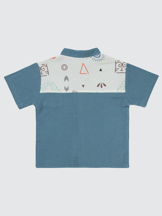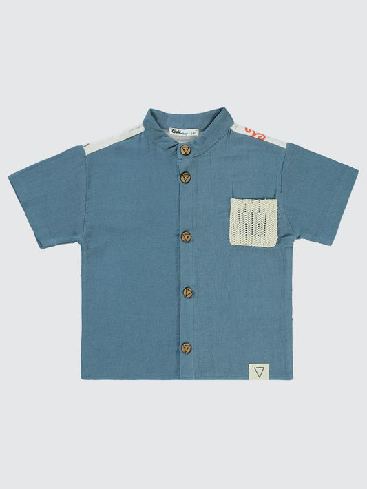Civil boys omuz baskılı cepli 2-5 yaş gömlek - mavi