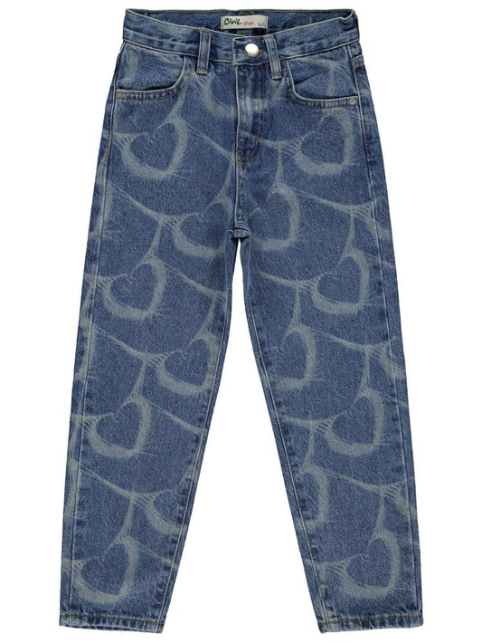 Civil girls kalp baskılı 6-9 yaş pantolon - mavi