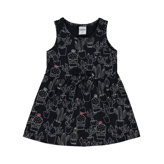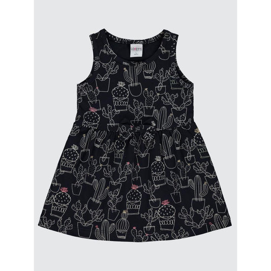 Lovetti line art cactus desen kolsuz 1-4 yaş elbise - siyah