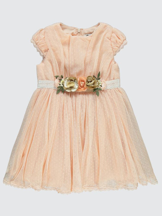 Civil girls çiçek kemerli 2-5 yaş elbise - pudra