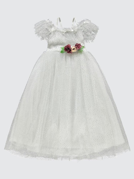 Civil girls çiçek aksesuarlı 6-9 yaş abiye - bej