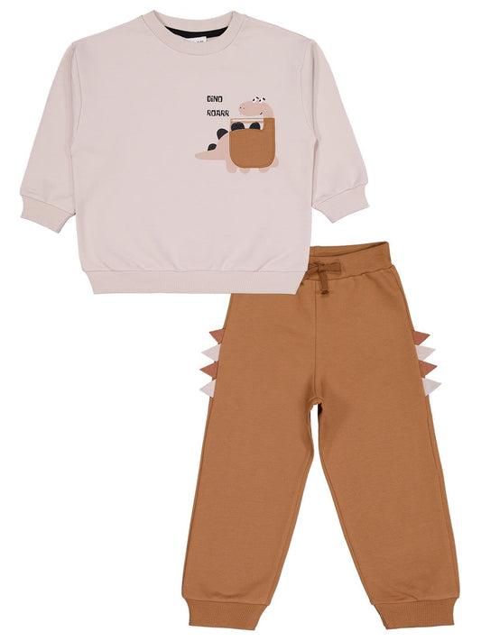 Civil boys dinozor baskılı 2-5 yaş eşofman takımı - bej