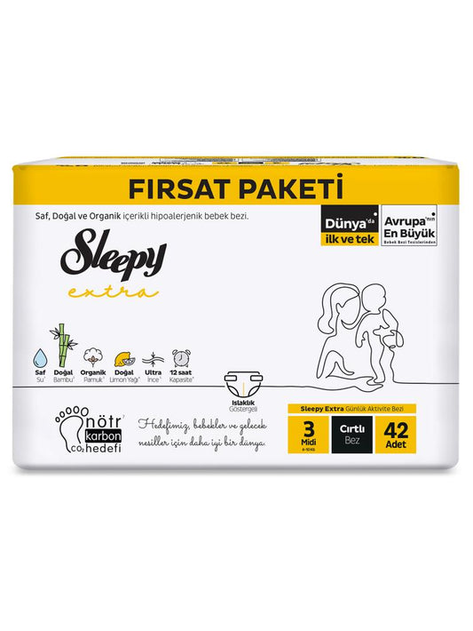 Sleepy extra günlük aktivite fırsat paketi bebek bezi 3 midi numara 42 adet