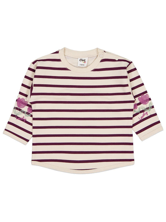 Civil baby çizgi emp. çiçek nakışlı 6-18 ay sweatshirt - bej