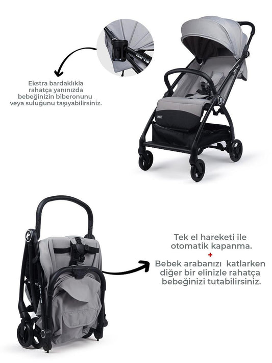 Kompakt Sürüş Performansı Mükemmel Tek Elle Katlanma Yeni Compact bebek arabası tek hareketle kendi kendine saniyeler içinde katlayabilir mekanizmaya sahiptir....