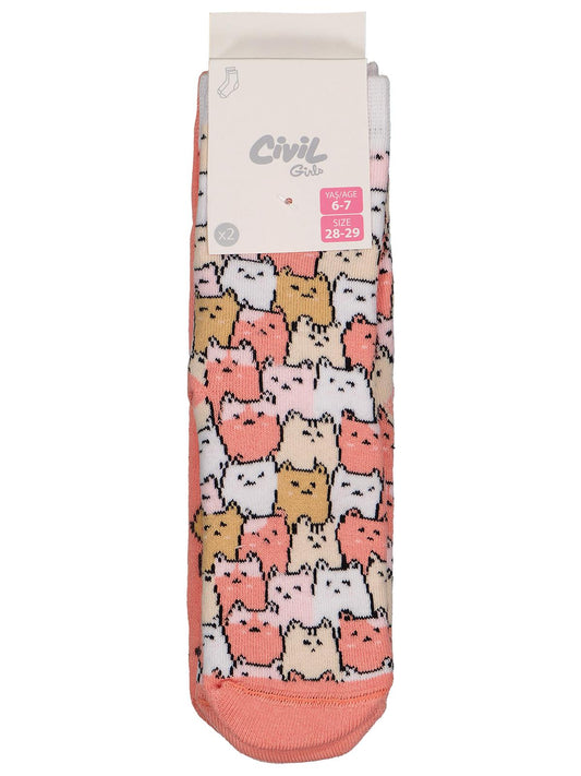 Civil girls cat havlu 2'li 2-12 yaş kız soket çorap