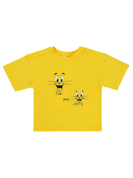 Tom and jerry baskılı 2-5 yaş tişört - sarı
