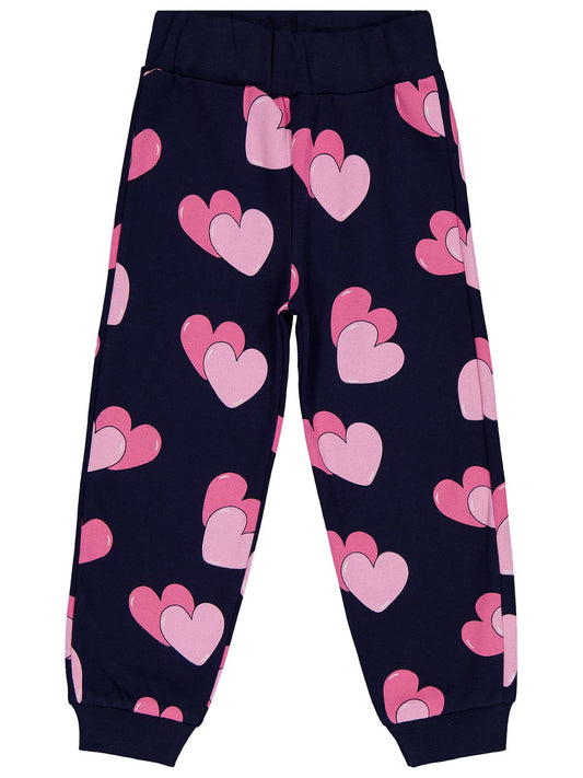 Civil girls renkli kalp baskılı 2-5 yaş eşofman altı - lacivert