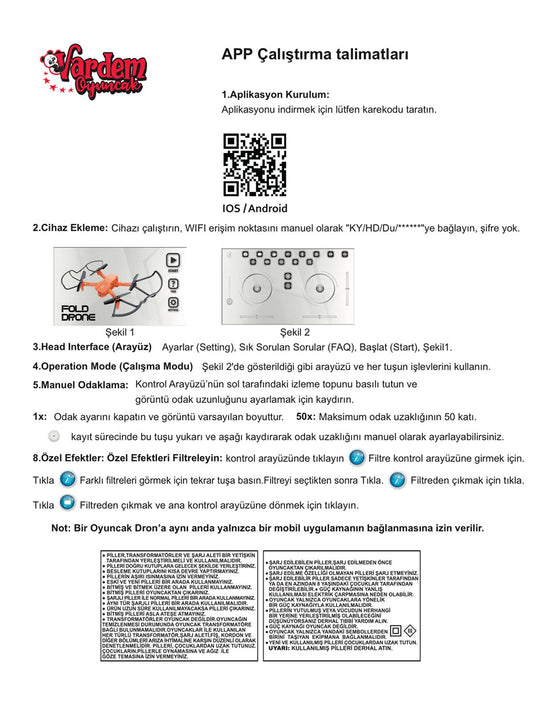 Vardem uzaktan kumandalı full fonksiyon 2.4g şarjlı kameralı katlanabilir drone