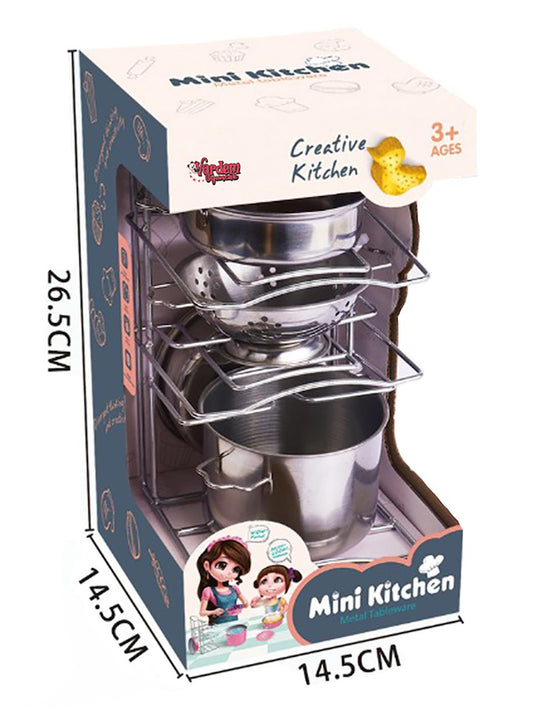 "Minik şeflerin mutfakta keyifli vakit geçirecekleri tencere tava seti! Çelik Tencere Seti 7 ParçaKutu Boyutu: 28x14x14 cm"