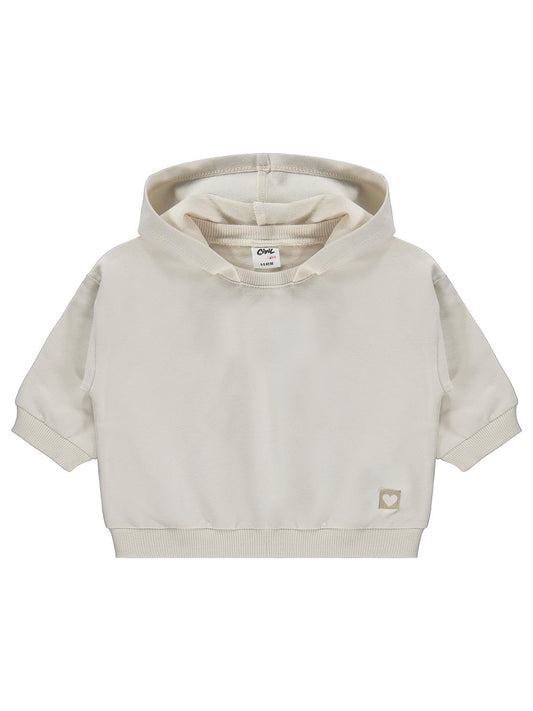 Civil baby civil basic kalp etiketli kapüşonlu 6-18 ay sweatshirt - bej