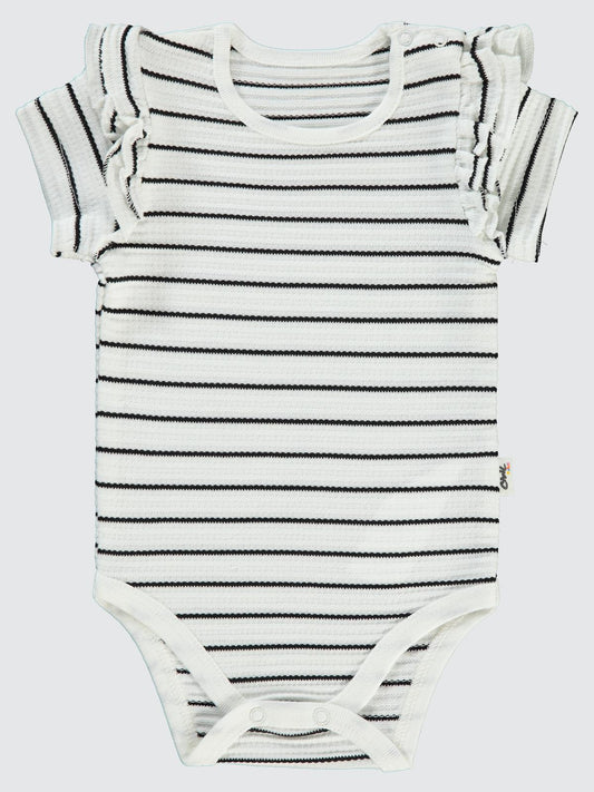 Civil baby çizgili jakarlı 1-18 ay çıtçıtlı badi - ekru