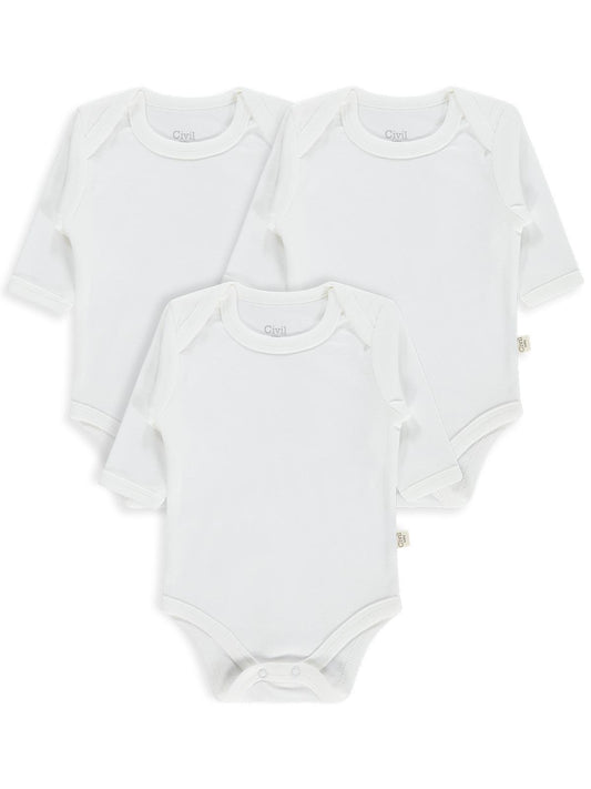 Civil baby düz uzun kol 3 lü 1-3 yaş çıtçıtlı badi - beyaz