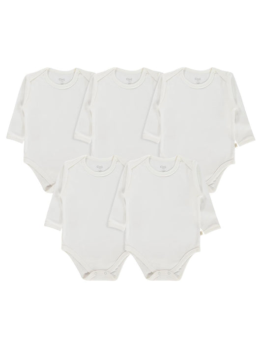 Civil baby düz uzun kol 5 li 1-3 yaş çıtçıtlı badi - beyaz