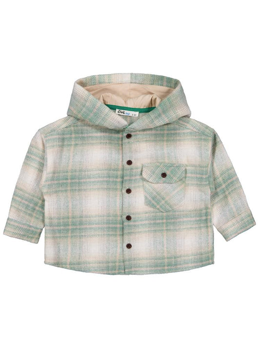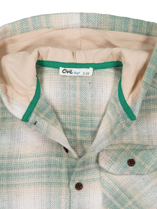 • Civil boys kapşonlu ekose 2-5 yaş gömlek - haki