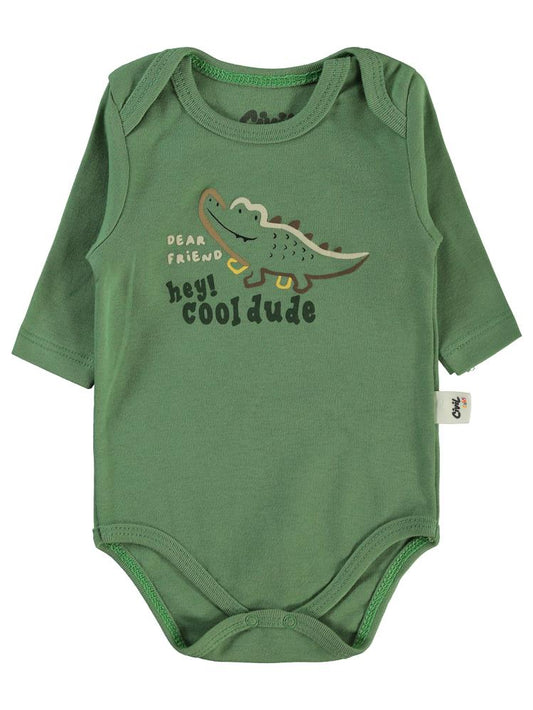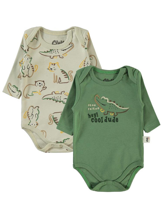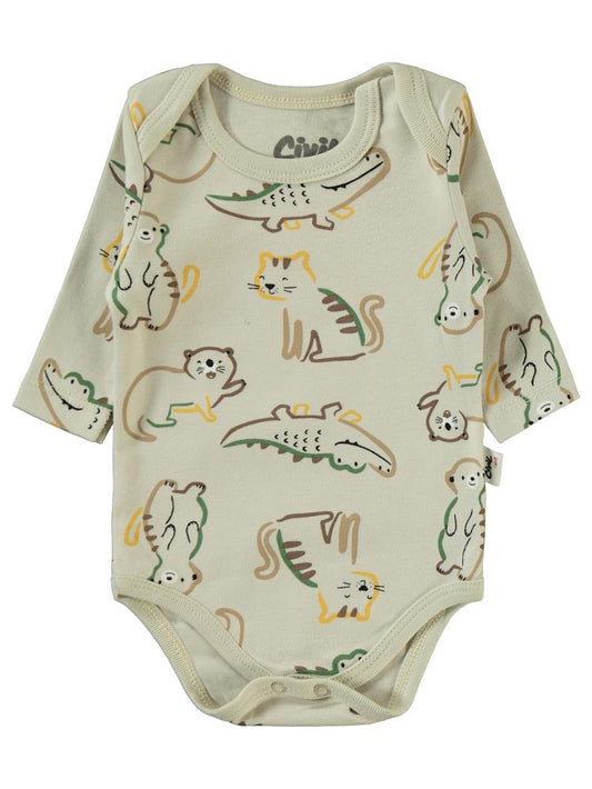 Civil baby renkli hayvanlar baskılı 3-18 çıtçıtlı badi - yeşil