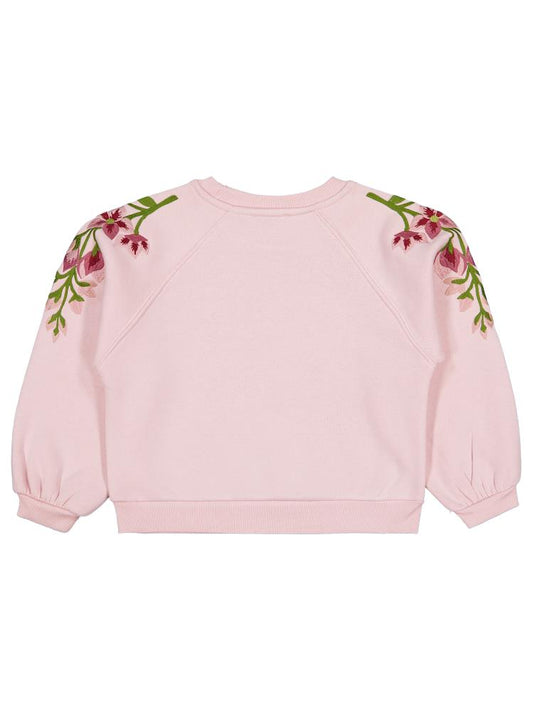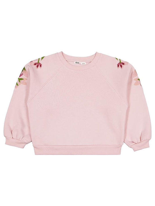 • Civil girls omuzu çiçek nakışlı 6-9 yaş sweatshirt - pembe