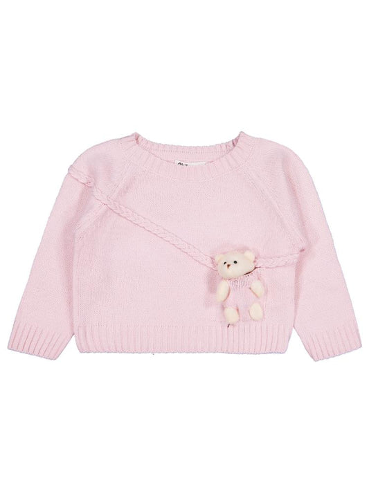 • Civil girls ayıcık aksesuarlı 2-5 yaş kazak - pembe