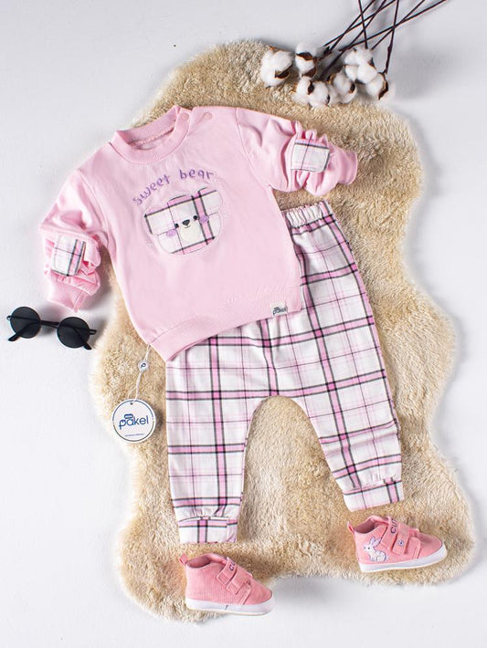 Mini pakel sweet bear nakışlı omuzu çıtçıtlı 2'li 6-12 ay takım - pembe