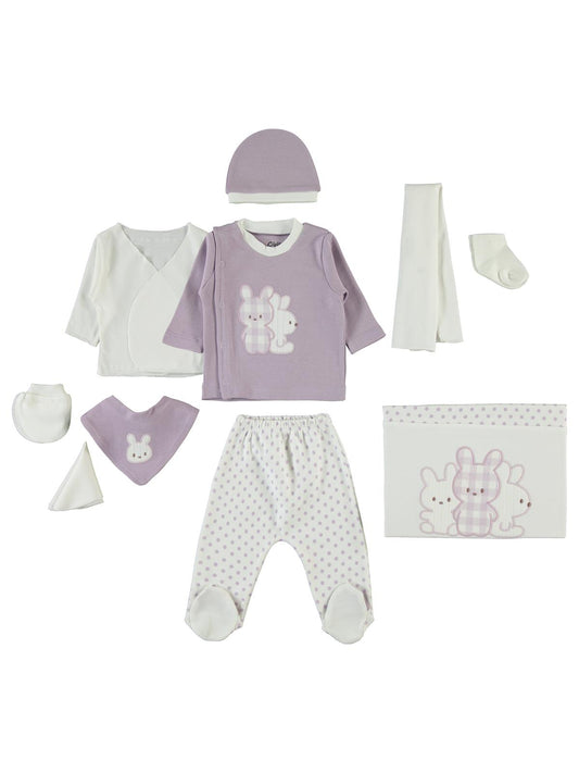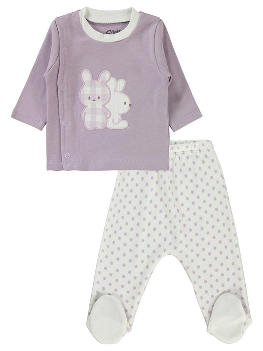 Civil baby tavşanlar nakışlı 0-1 ay zıbın setleri - lila